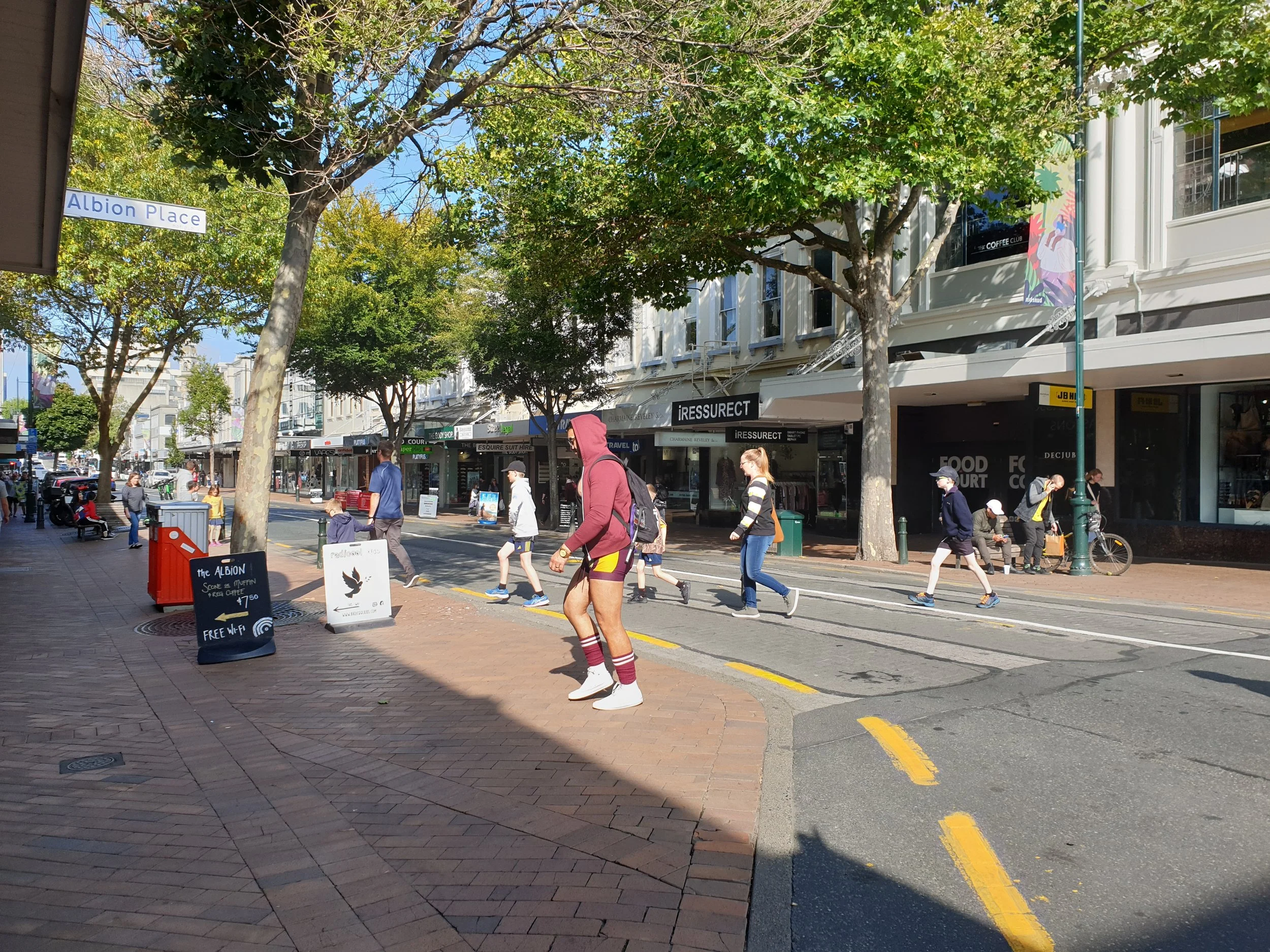 George Street functioned as a primary walking destination, with consistent foot traffic throughout the day.